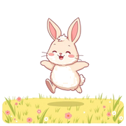Wear your happiness on your sleeve with this funny bunny t-shirt! It shows a fluffy bunny hopping with pure delight.